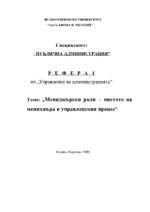 „Мениджърски роли – мястото на мениджъра в управленския процес”